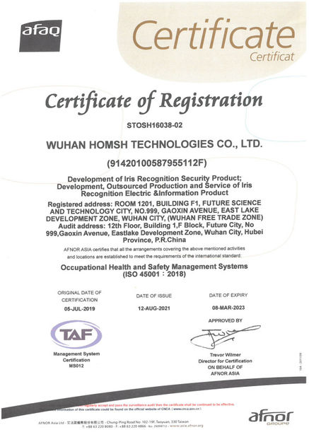 Au cours de la dernière décennie, Homsh Technologies a été un pionnier dans le domaine de la reconnaissance de l'iris,adhérer à l'innovation technologique et développer des algorithmes de base et des technologies de puces de circuits intégrés de pointeL'entreprise a été récompensée par plus de 60 récompenses et reconnaissances à différents niveaux, du national au provincial, témoignant de sa croissance robuste et durable.Homsh a obtenu 18 diplômes d'entreprise., y compris être reconnue comme une entreprise nationale de haute technologie et recevoir des certifications comme ISO 9001:2015, norme ISO 14001:2015, et ISO 45001:2007La société a également remporté 16 prix d'entreprise, tels que le China Patent Excellence Award et le Gold Patent Award de la province du Hubei.Son bassin de talents compte 13 distinctions, dont le programme des centaines de talents du Hubei.La société est membre de neuf associations de l'industrie,y compris l'Alliance stratégique pour l'innovation biométrique, et a contribué à l'élaboration de huit normes nationales dans le domaine de l'identification biométrique mobile et des domaines connexes.